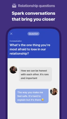 💬 Questions and conversation starters: Unleash deeper dialogue! Explore insightful questions designed to provoke thoughtful discussions. Responses stay hidden until both of you have answered, ensuring honesty and spontaneity.