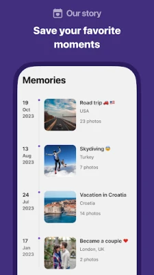 📸 Memories: Cherish your journey together! Store and revisit your most precious moments, creating a digital scrapbook of your shared experiences.