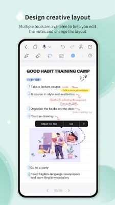 - Design the layout of your notes with multiple editing tools such as an eraser and lasso tool or insert pictures to create unique and beautiful diaries.