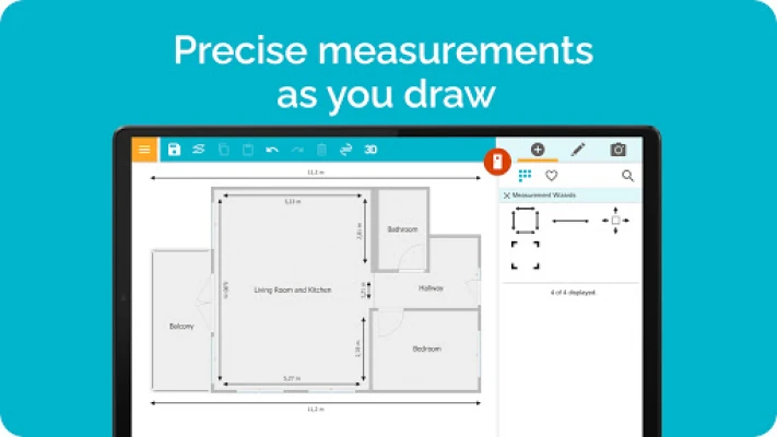 Draw walls with precise measurements - use meters or feet. Add windows, doors, and stairs, and easily resize them to fit your layout. Finalize your floor plan with thousands of materials and furniture options.