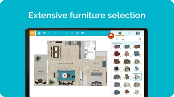 Replace materials on fixtures and furniture to customize the look and feel of your home design. This gives unlimited ways of customizing your project with different colors and materials. Available through in-app purchases.