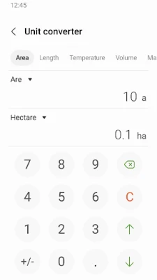 To convert units, tap the unit calculator button. You can easily convert various types of units, such as area, length, and temperature.