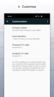 - Add personal details to your reports; include company name, logo, auditor name and signature.