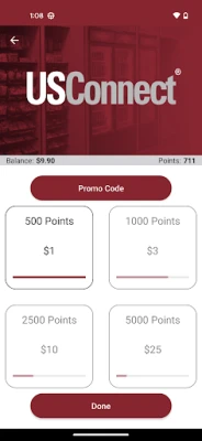 This app is for smart vending machines, Bistro to Go! self-checkout kiosks & approved food service terminals that accept the USConnect® loyalty card and is not compatible with other systems. To see if your system is compatible, look for the USConnect® logo on your employer-provided badge, vending machines, payment kiosks or food service terminals.